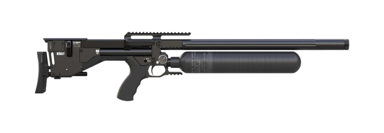 El AirMaks Krait X es un rifle bullpup de aire comprimido diseñado para ofrecer precisión, potencia y comodidad. Cuenta con regulador y válvula ajustables, gatillo de dos etapas y carga lateral ambidiestra, brindando una experiencia de tiro adaptable y confiable para caza y el tiro deportivo.