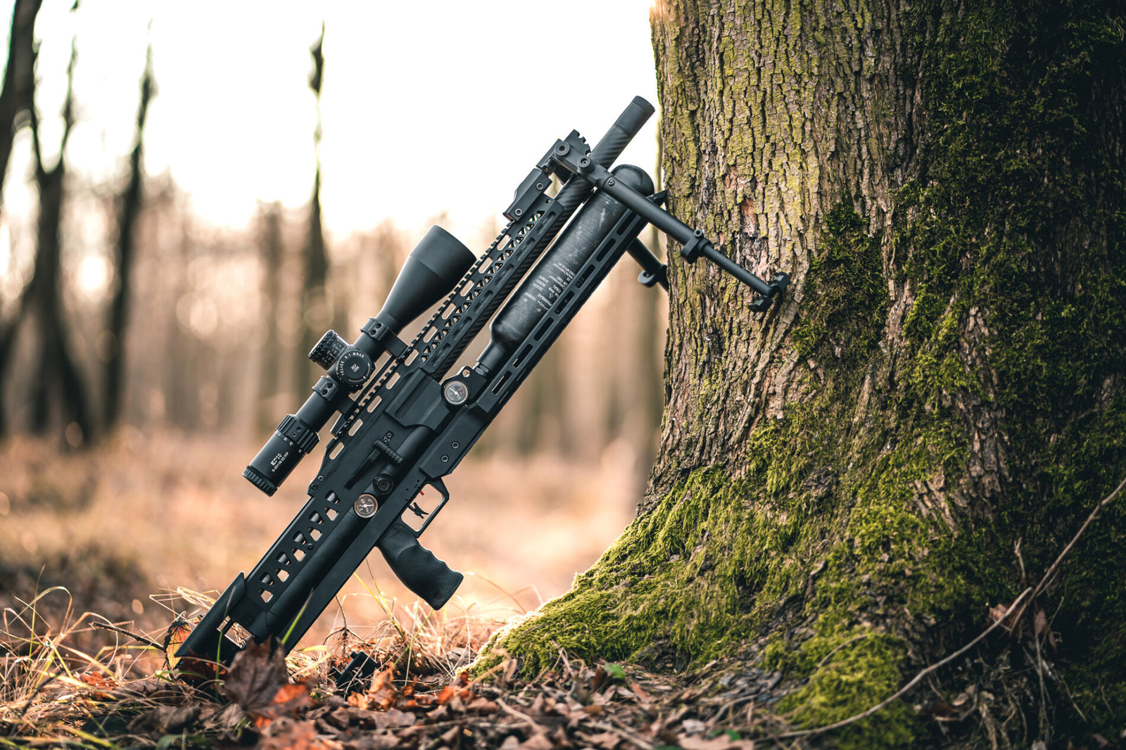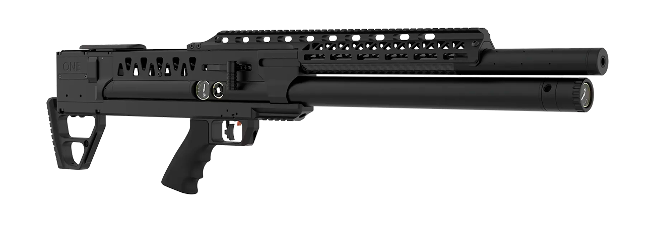 Rifle de aire totalmente personalizable, capaz de transformarse en un rifle táctico de largo alcanceo en una bestia compacta. Su culata táctica es plegable lateralmente, lo que permite reducir sus dimensiones de transporte a tan solo 54 cm de longitud total.