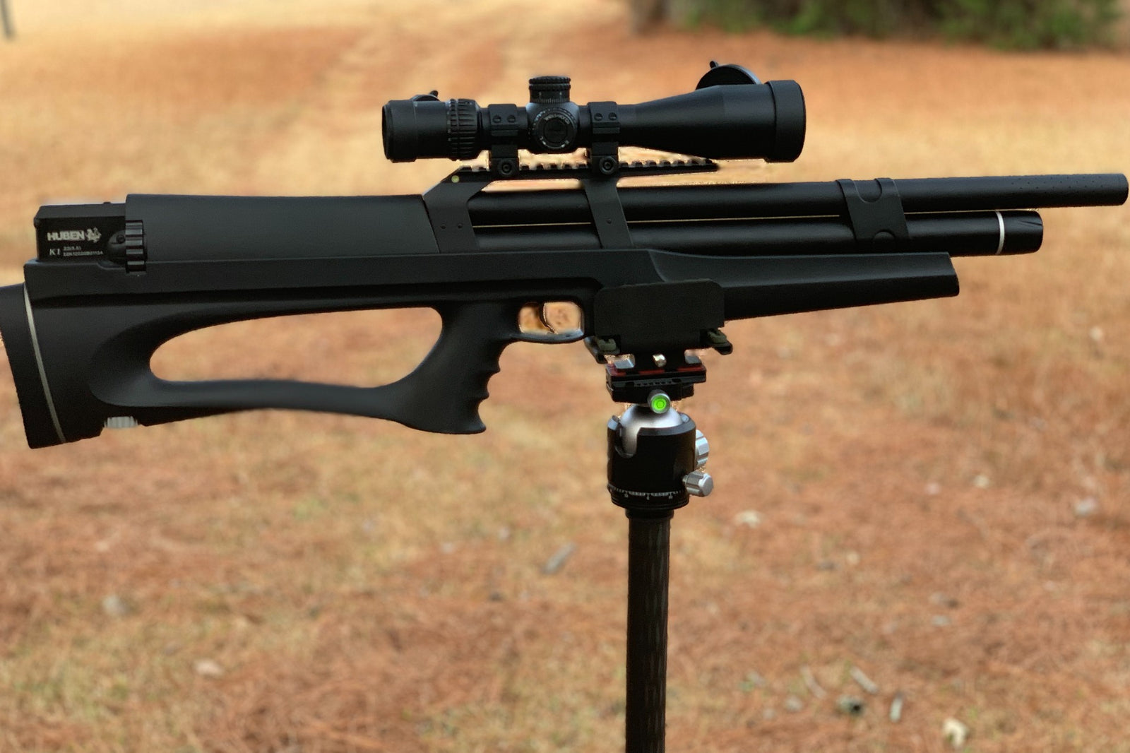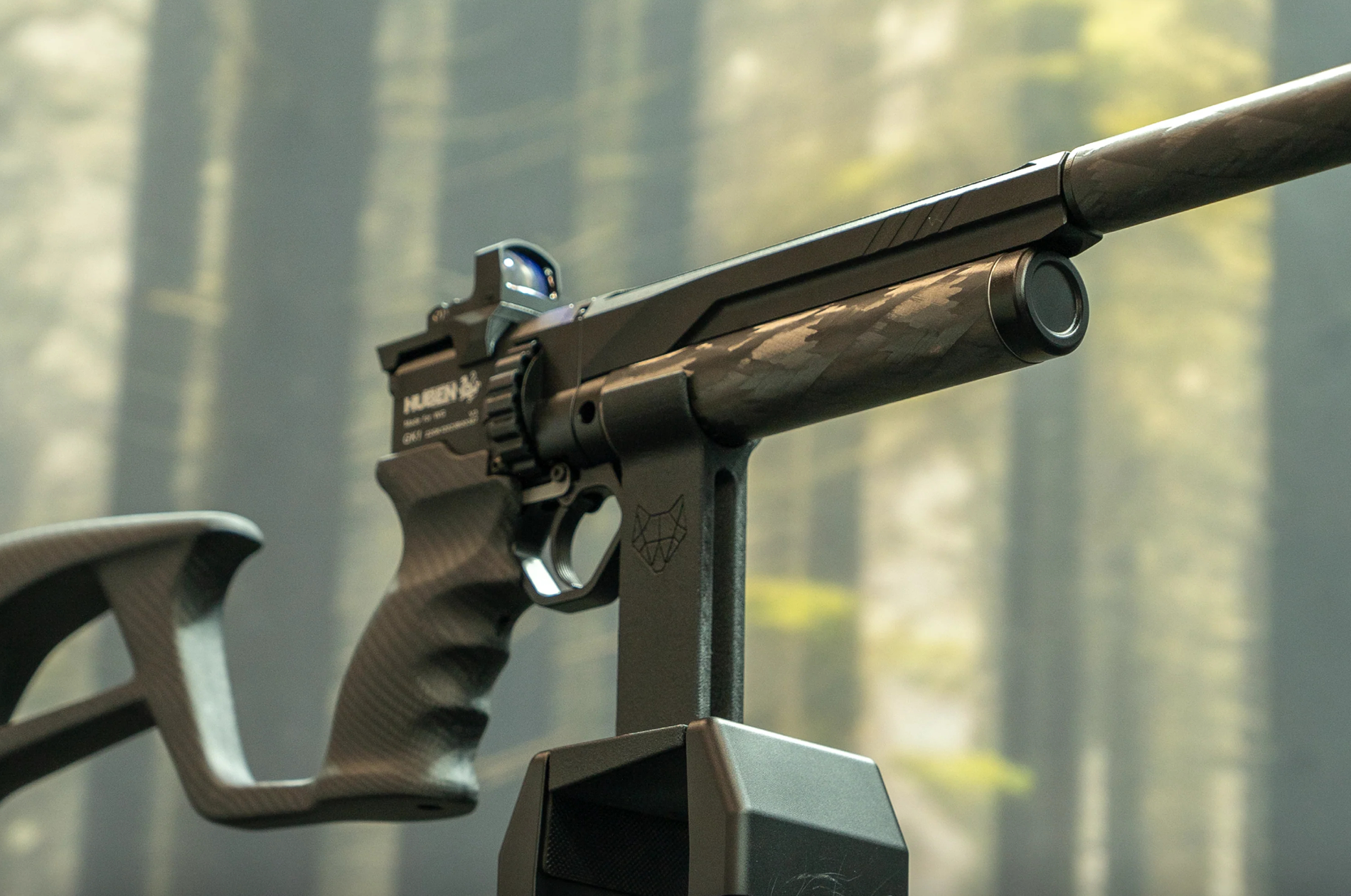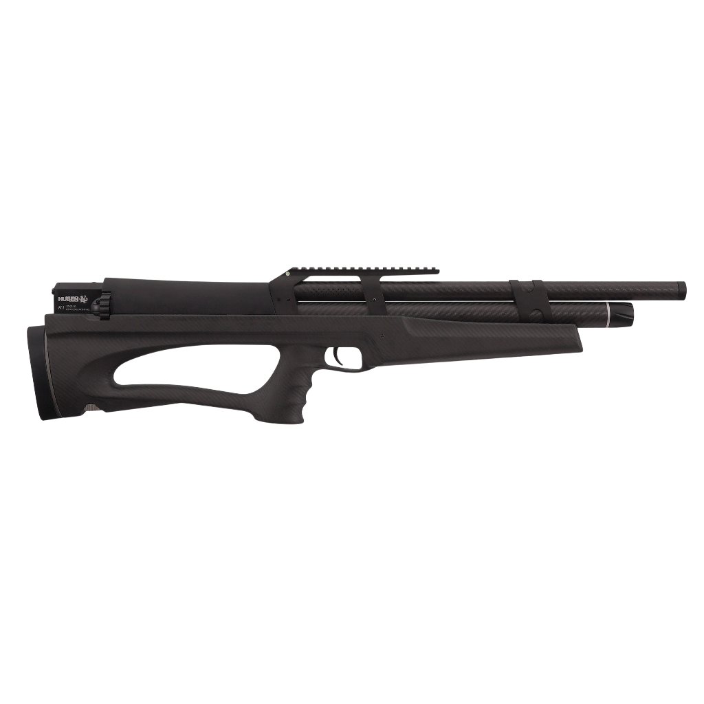 PCP bullpup semi‑automático diseñado para ser ultraligero y muy estable: la versión Lite monta un nuevo guardamanos/culata en fibra de carbono que reduce ~600 g, dejando el conjunto en ~2,7 kg y 830 mm de longitud total —esto lo posiciona como uno de los bullpups más ligeros y potentes del mercado