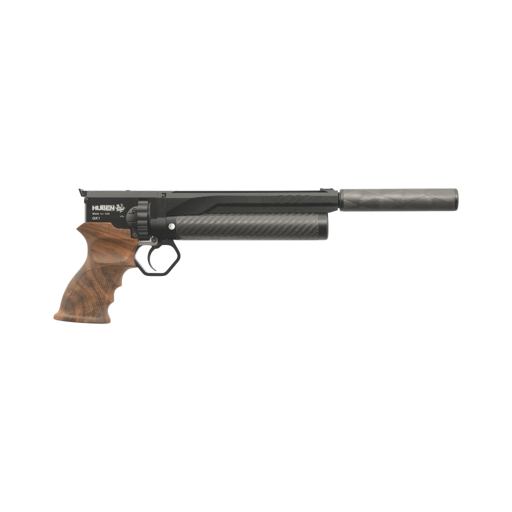 compacto y potente diseñado para quienes exigen rendimiento sin sacrificar manejabilidad. Con solo 1,2 kg y 325 mm de longitud, ofrece sistema PCP con cilindro de 85 cc, cargador rotatorio , potencia regulable (≈6–55 J en .22) y cañón de 210 mm. Elegante empuñadura de nogal, raíles para óptica y opción de adaptador 1/2-20 UNF para silenciador: precisión y potencia en formato pistola.